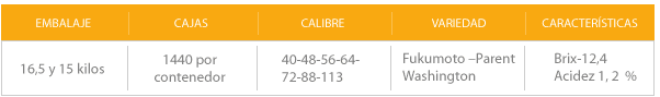 Our Navels high level Brix's, intense color, excellent internal and external condition. The picking are from April to June.